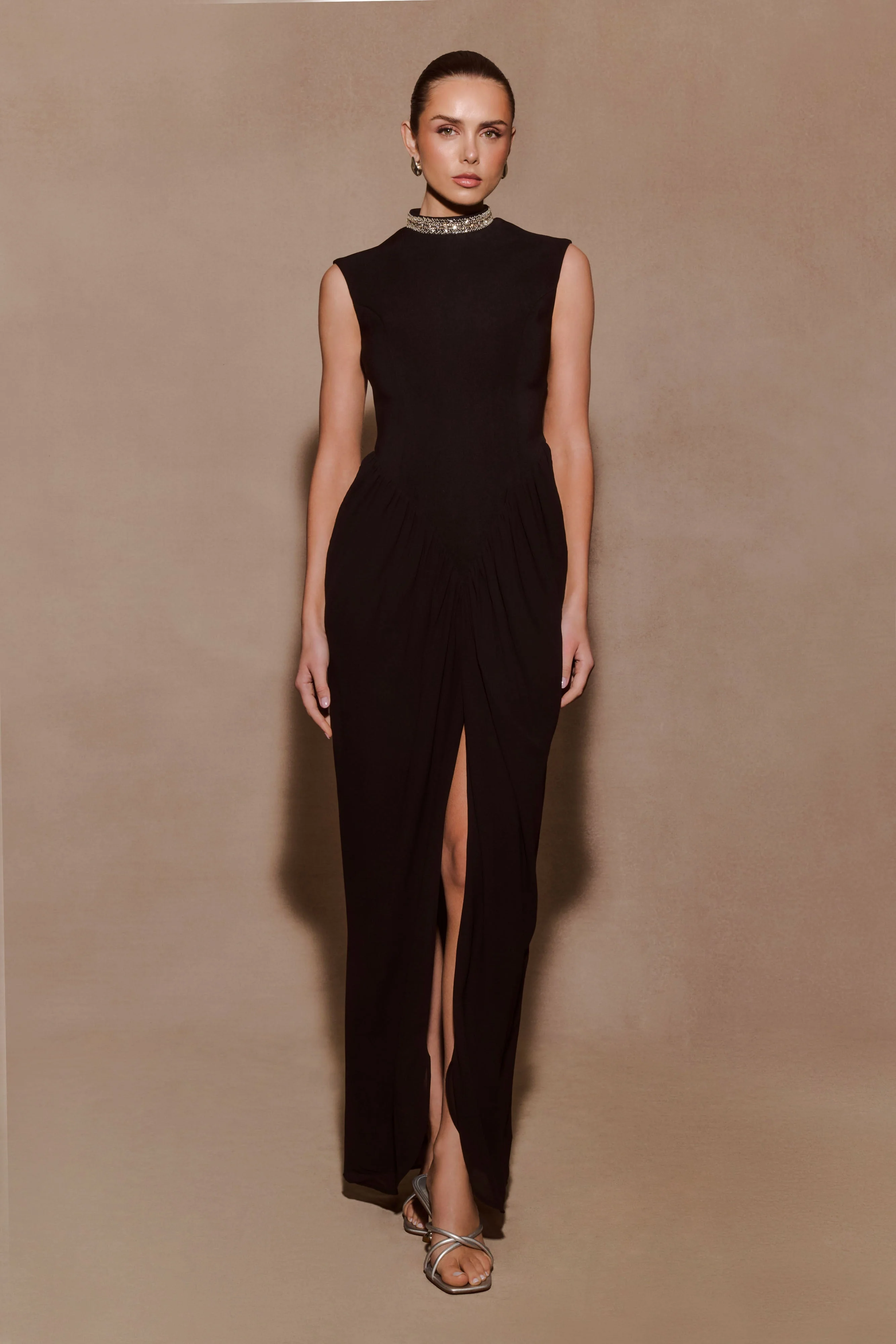 Giselle Off Shoulder Cowl Neck Maxi Dress - Black